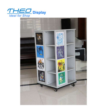 Rimovibile 4 lato girevole slotwall di legno cosmetici display rack con ruote