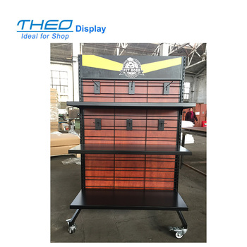 ที่ถอดออกได้4ด้านหมุน Slotwall ไม้ชั้นวางจอแสดงผลเครื่องสำอางที่มีล้อ